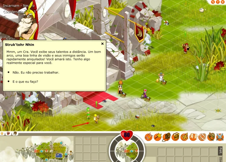 Posição: [0,3] Pré-requisitos: Nenhum Recompensas: 105 XP Primeiras armas Ao sair do castelo de Incarnam, você irá falar com o npc ‘Struk’tohr Nhin‘, ele irá pedir para que você