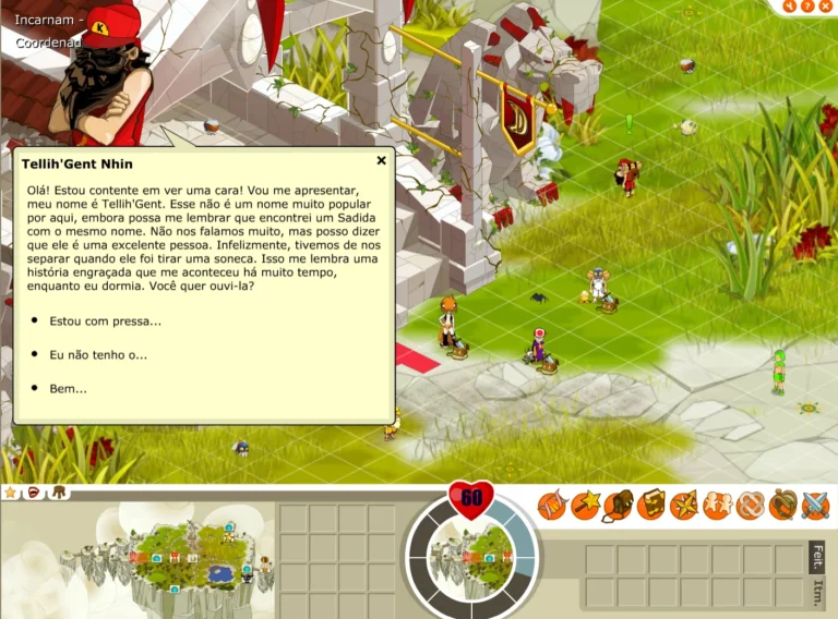 Posição: [0,3] Pré-requisitos: Nenhum Recompensas: 50 XP , 75 Kamas Papo furado Após iniciar o diálogo com o npc ‘Tellih’Gent Nhin‘ , é solicitado ao jogador que vá em